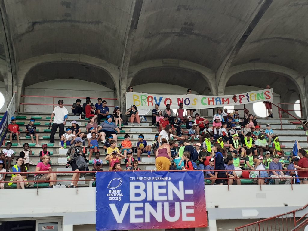 Le 12 Juillet 2023, au stade Espinassou à Niort, Le club de rugby de NIORT a organisé la COUPE du MONDE des QUARTIERS.  L’ensemble des quartiers (enfants de 6 à 12 ans) de Niort était réuni, les joueurs du club & les accompagnateurs et responsables des maisons se sont affrontés autour d’un rugby éducatif. Sous la responsabilité de Aurélien BUSSON, chaque équipe était accompagnée d’un joueur du club.